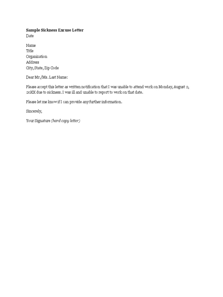 Excuse for calling in sick. Application excuse letter for sick student. A sick day email is required when an employee is feeling under the weather and is unable to come to work. Excuses to leave work early. I am writing this email to inform you that i will not be able to come to work for seven days starting on 12th i have five allowed sick days left and i am attaching in the filled sick leave request form as well as the evidence document of the dentist's visit. Sample excuse letters and email for sickness and absent days. I'll let you know what my doctor has to say about how. I know the worst excuse: Your professor may or may not respond, and depending on their policy otherwise, email asap to explain your absence (no later than the same day as the absence if possible). I will be away from work for one week while training. Use this sample sick day email message when you will be taking a sick day and email is an acceptable way to notify your supervisor. Even more so, no one likes being sick and having to muster up all of their zombie energy to compose a sick day email to their boss. Writing an informative sick day email should accomplish a few things.